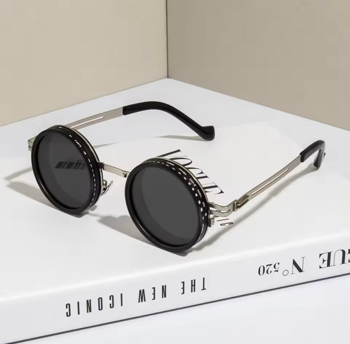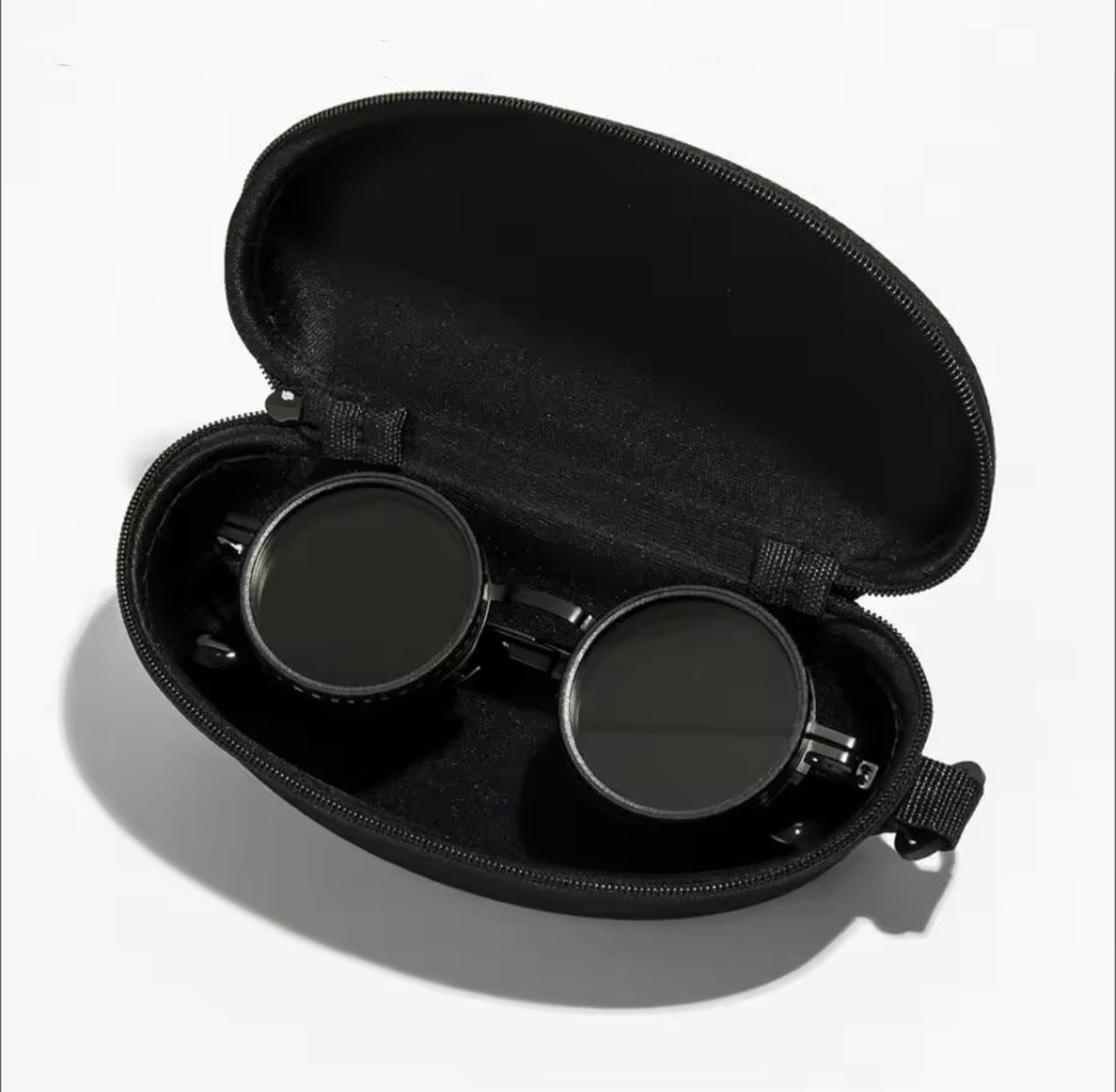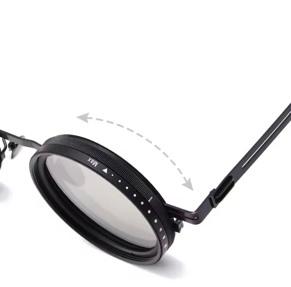 Our dimmable sunglasses use a small dial on the frame to adjust the lens tint. Turn the dial until you find the dim that best suites your setting!